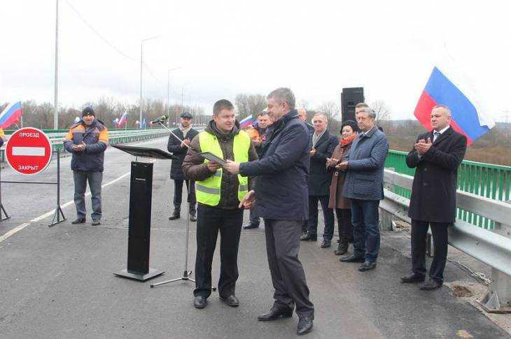 Строители были награждены благодарственными письмами. Руководитель ООО «Мостстройинвест» Александр Молчанов сказал, что строители горды своим делом. Губернатор разрешил открыть движение. Тут же перевернули символический знак. Первыми по мосту прошли спецмашины строителей.