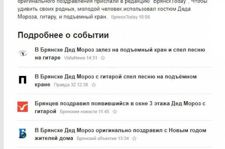 У сайта «Правда 32» сегодня сотрудники «Тудея» взяли заголовок «В Брянске Дед Мороз с гитарой спел песню на подъёмном кране». Первый заголовок (его сохранил веб-адрес: V-Bryanske-snyali-na-video-originalnoe-pozdravlenie-Deda-Moroza-s-gitaroy) у промышляющих воровством «журналистов» был такой: «В Брянске сняли на видео оригинальное поздравление Деда Мороза с гитарой». Однако, чтобы выскочить в «Яндексе» на первую строку, «тудеевцы» переписали с десяток заголовков и в конце концов просто взяли то, что придумали в «Правде 32».