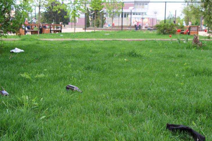 Для начала побили фонарь перед концертным залом «Дружба». Потом начали забрасывать газоны пивными бутылками и мусором.