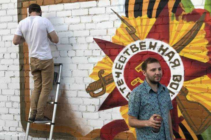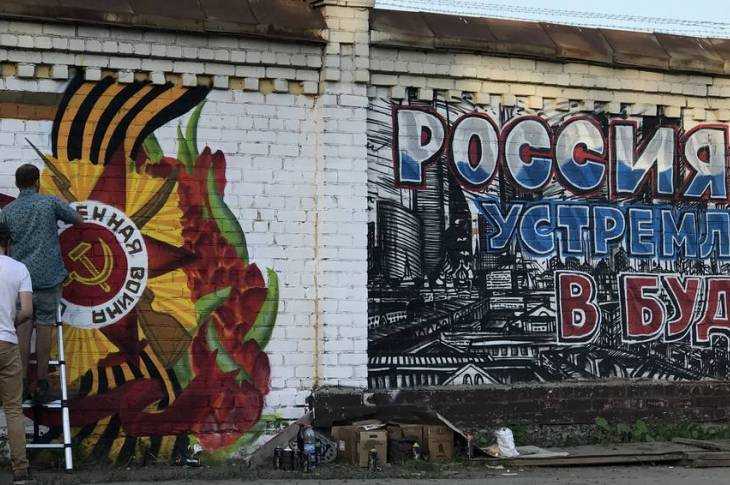 В Брянске художники преобразили глухой кирпичный забор на улице Ульянова неподалеку от БМЗ. Картины посвящены Победе и величию России.