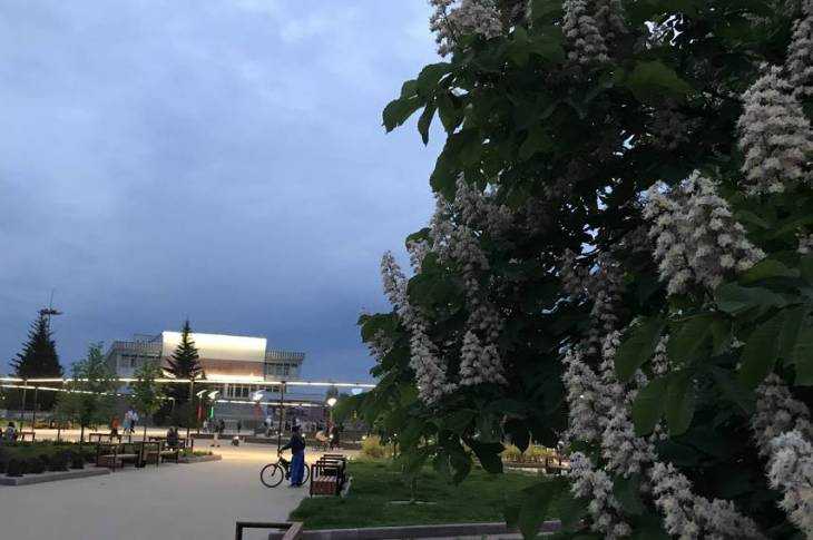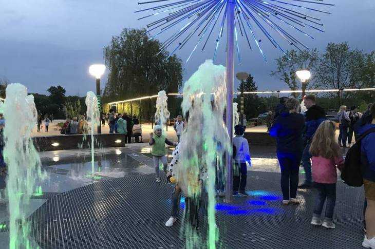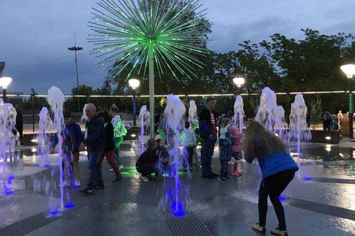 Дети катались на самокатах и велосипедах, родители прогуливались по дорожкам. Все фотографировались у фонтана, на смотровой площадке, возле клумб и декоративного кустарника.