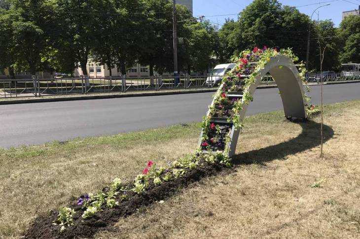 В Брянске на Московском проспекте установили изящные мостики из цветов. Теперь эта «радуга» радует всех проезжающих.