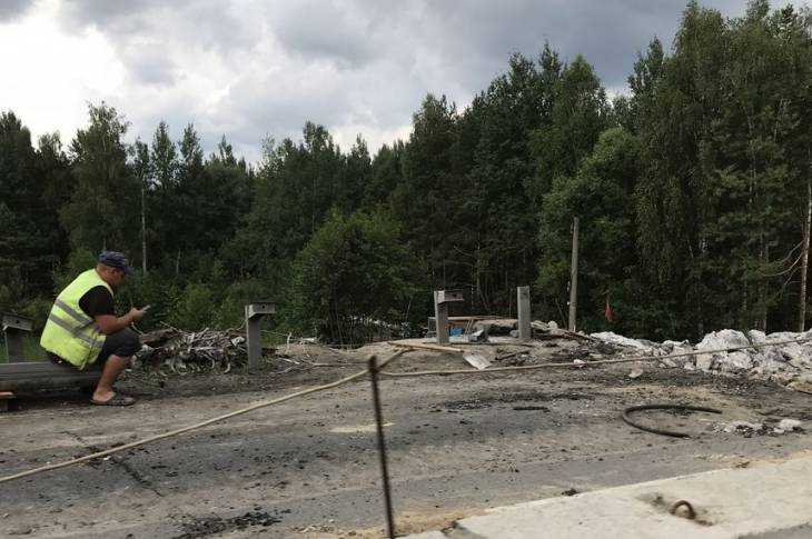 На выезде из Брянска отремонтировали половину моста за мясокомбинатом.