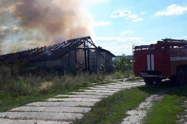 В поселке Локоть Брянской область загорелся бывший коровник конного завода.