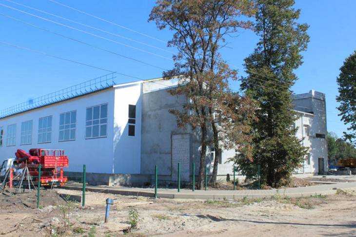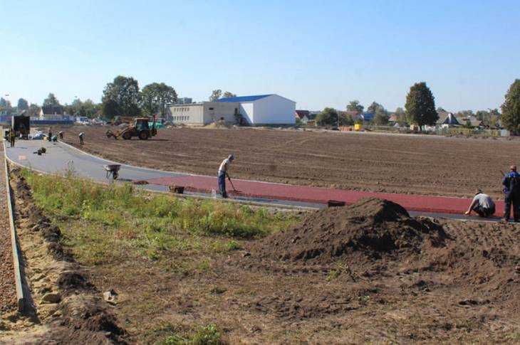 В Комаричах в ударном темпе строители спешат благоустроить местный физкультурный комплекс и стадион.