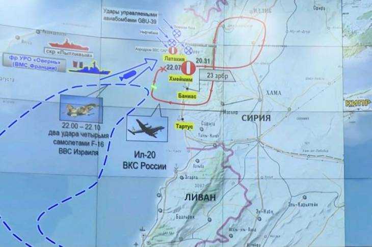 На сегодняшнем брифинге официальный представитель нашего Генштаба генерал Конашенков заявил: «..В ходе переговоров по линии деконфликтинга представитель штаба ВВС Израиля сообщила, что цели, по которым планируется нанести удары израильской авиации, находятся на севере Сирии…Однако удары израильских ВВС наносились не в северной части Сирийской Арабской Республики, а в районе Латакии, которая является её западной провинцией. А сам город Латакия расположен на западном побережье страны…»..