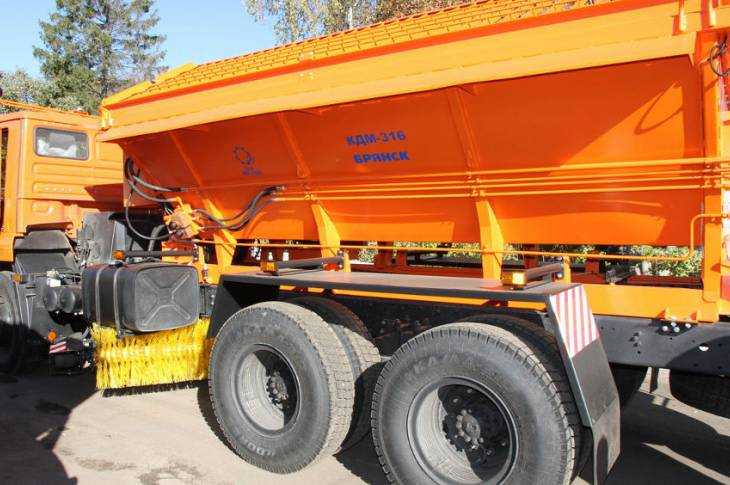 В числе новых приобретений комплексная дорожная машина производства брянского завода «Ирмаш». На базе КДМ есть приспособления для чистки барьеров и ограждений.