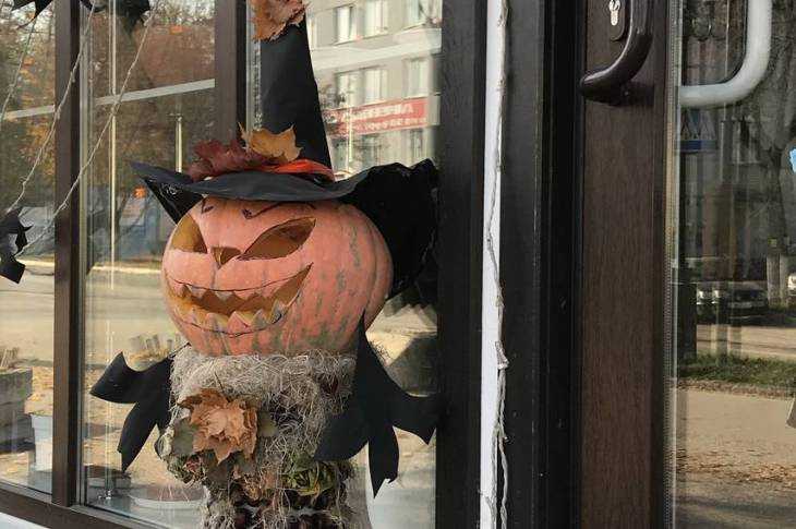 Главную улицу Дятькова украсили веселыми чудиками из тыкв и козлами из берез.