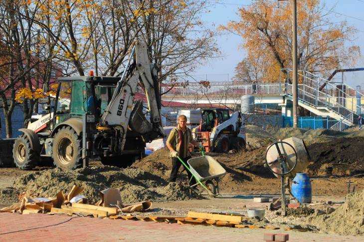 В Володарском районе Брянска капремонт сквера имени Ленина вышел на финишную прямую: строители почти уложили всю плитку и облицевали колонны на входе гранитом.