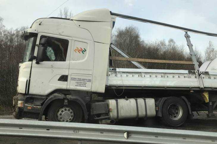 На трассе Брянск – Орел фура сокрушила ограждение и перевернулась