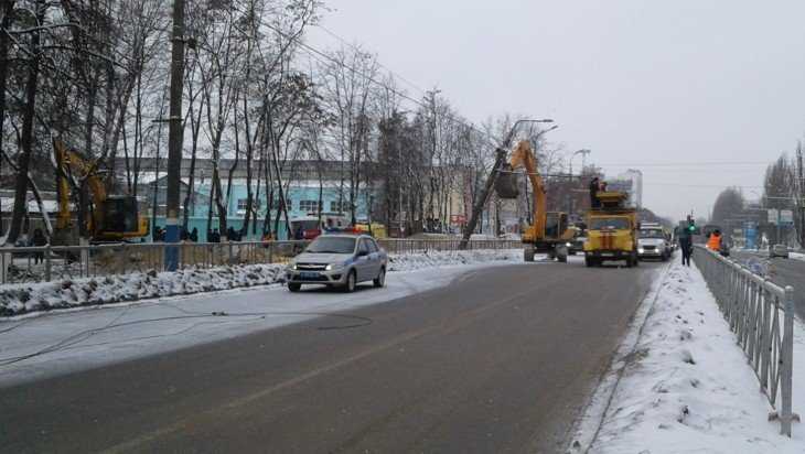 Падение опоры вызвало затор на главной транспортной магистрали Фокинского района.
