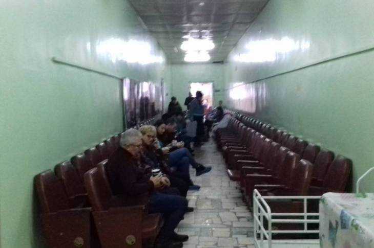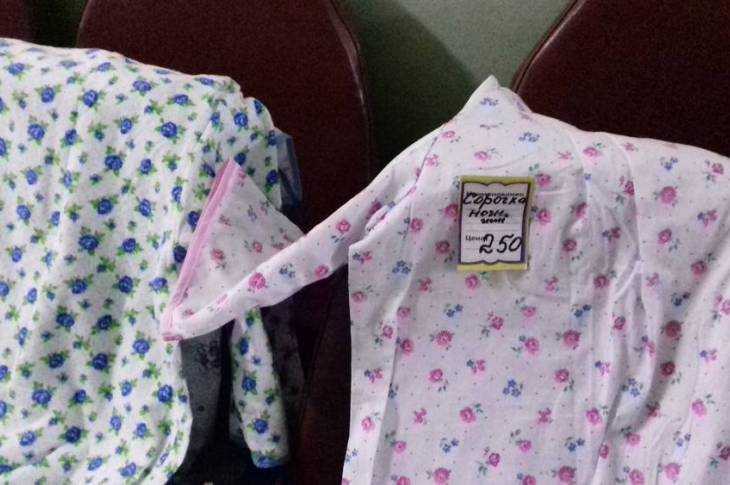 Уже в холле продают книжки, серебро и прочий товар. В коридорах вообще не протолкнуться. Вдоль прохода посетителей встречают коробейники. Два ряда стульев, которые используются в качестве витрин и прилавков, сузили коридор до неприличия. Продают постельное белье, рубашки, халаты, полотенца, которые уложены рядами и стопками. Причем на ценниках товары нет сведений о том, кто продает его, что является нарушением закона. Онлайн-касс, разумеется, тоже нет.