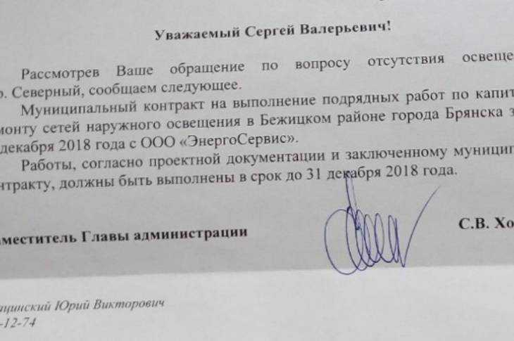 Власти Снастина услышали. Он получил письменный ответ от заместителя главы городской администрации Сергея Хоменкова.