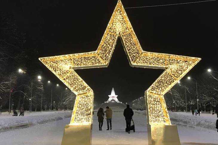 Площадь Воинской славы заполнена людьми и днем, и поздним вечером. Светящаяся елка превратилась в большой шатер, рядом с пестрыми снегирями катаются дети, через яркую звезду, установленную неподалеку от фонтана, идут к звезде на Кургане Бессмертия. Олени с санями, снеговик с салазками – все привлекает внимание не только взрослых, но и детей.