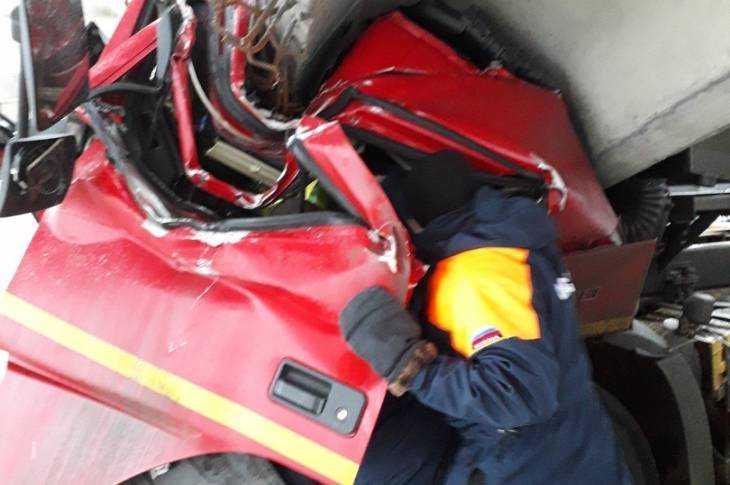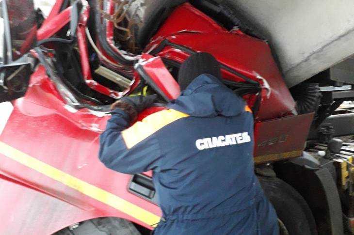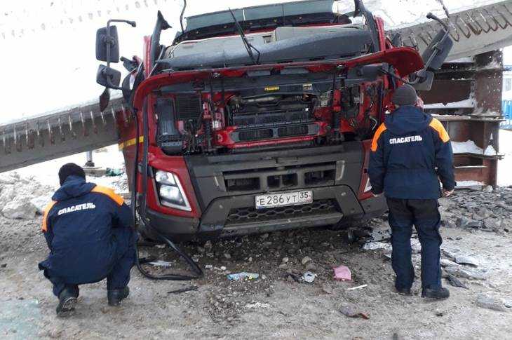 Мужчина погиб мгновенно, его тело было раздавлено в кабине. Сейчас спасатели пытаются освободить автомобиль, не допустив обрушения конструкций.