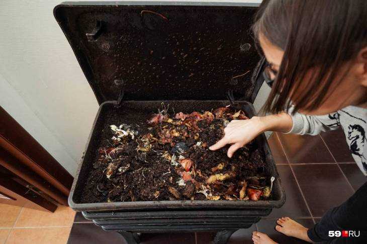 − Мы поставили комнатный вермикомпостер — это контейнер, где живут черви. Они перерабатывают пищевые отходы в биогумус. Если компостер правильно эксплуатировать, отходы в нем не гниют и запаха никакого нет.