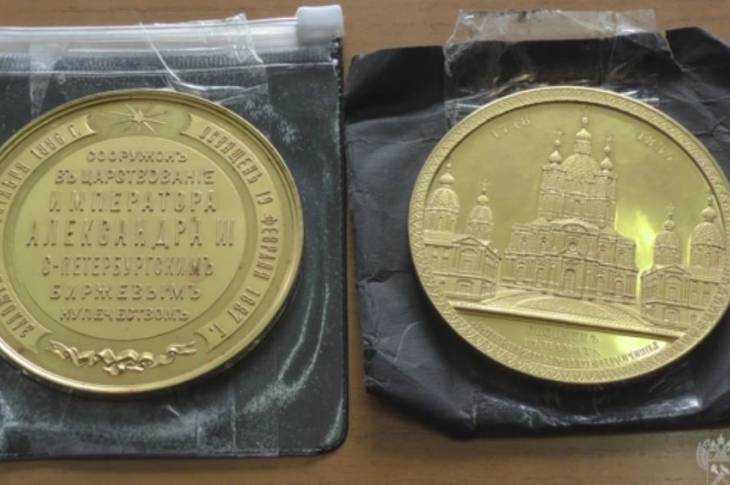 Самыми дорогими находками стали две золотые медали, не имеющие культурной ценности. Это современные копии настольных знаков «В память освящения в Санкт-Петербурге Собора всех учебных заведений, 1835 год» и «В память сооружения памятника императору Александру II в здании С.-Петербургской биржи, 1887 год». Они изготовлены из золота высокой пробы. Общий вес их – более 250 граммов. На таможне знаки оценили в полтора миллиона рублей.