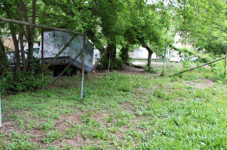 Все просто: металлические ворота поломаны, площадка заросла и стала опасной, так как здесь хватает хлама. Чиновники будто умышленно показывают, что им наплевать на благоустройство города, на то, что у детей нет даже крохотной площадки.