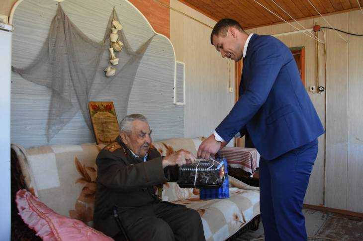 После окончания мероприятия Владимир Леонов посетил ветерана Великой Отечественной войны Ефима Илюхина, которому в этом году исполнится 95 лет, и вручил ему приставку для перехода на цифровое телевидение.