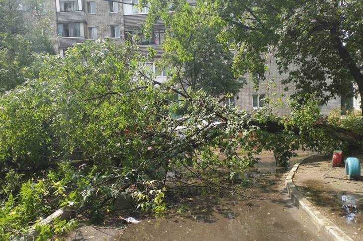 В Брянске на Московском проспекте упало огромное дерево, а на улице Менжинского сломанная береза перекрыла дорогу.