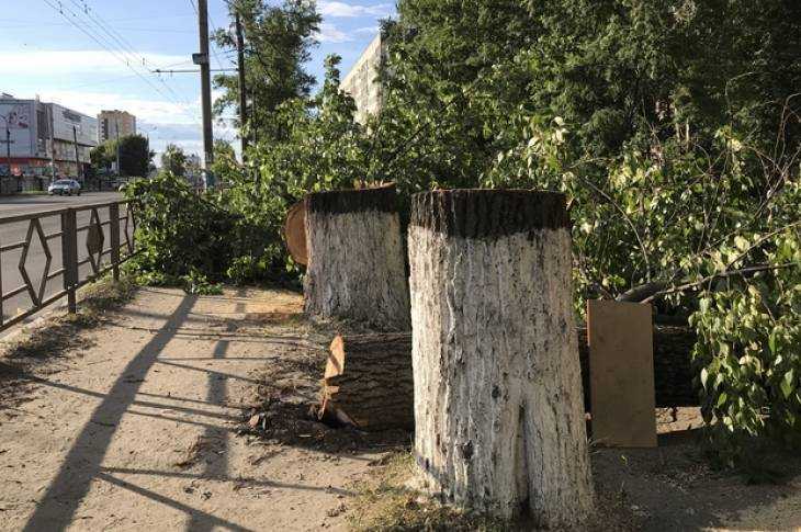Сейчас в связи с расширением дороги на Авиационной улице спиливают деревья. Работа непростая, и осторожности «лесорубам» не хватило. Пешеходную зону они частично повредили – в частности, разбили фонари.