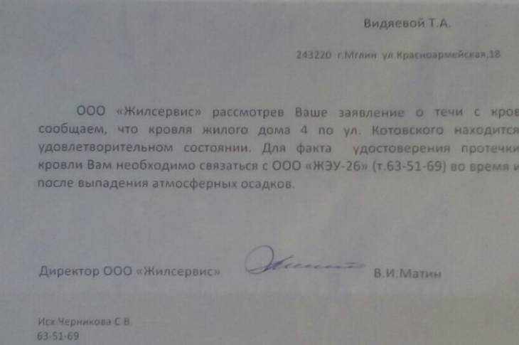 Жители Фокинского района, которые пожаловались на ООО «Жилсервис», получили наконец ответ из этот компании. Он характерен для брянских коммунальщиков. По мнению горожан, ни законы, ни надзорные органы так ничего и не изменили в этой «черной дыре» постсоветского бытия.
