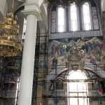 Работа под куполами на высоте около 30 метров требует от художников и силы, и смелости, и выносливости. Библейские сюжеты, представленные в каноничном стиле, можно разглядывать очень долго, в них много важных деталей.