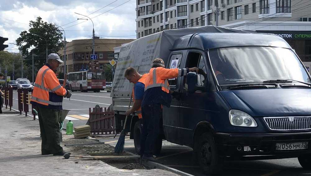В Брянске на остановке возле площади Воинской славы начали укладывать ребристую плитку.