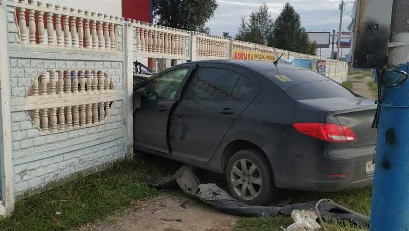 В Брянске водитель автомобиль «Пежо» пробил забор на Литейной улице.
