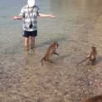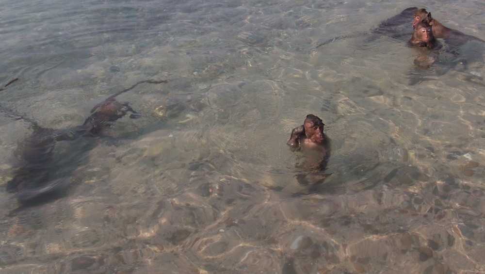Забыв про огурцы, макаки ринулись к нашему земляку, выпрашивая брянский хлеб. Мужчина был вынужден зайти в море, так как обезьяны норовили вскочить ему на плечи в надежде выхватить кусок. В итоге зачерствевший хлеб был съеден на ура до последней крошки. Макаки еще подбирали их прямо в воде.
