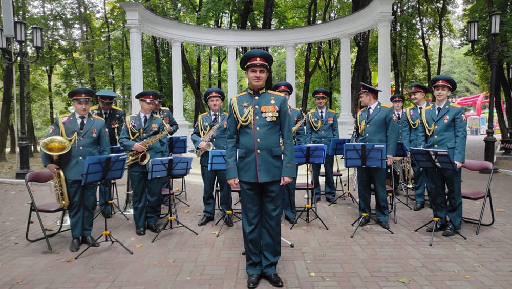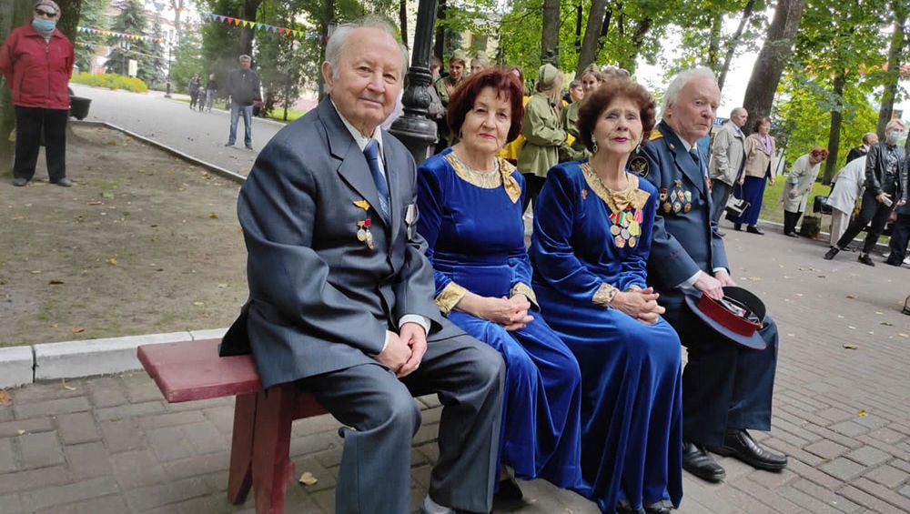 Для них играл на площадке у фонтана оркестр Росгвардии. Музыканты исполнили песни военных лет вместе с ансамблем «Созвучие» и хором ветеранов ГДК Советского района.