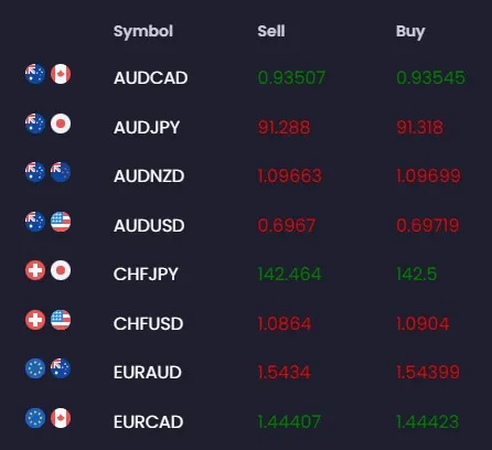 - Форекс. На онлайн-платформе присутствуют все основные и второстепенные валютные пары. Экзотика представлена не так широко.