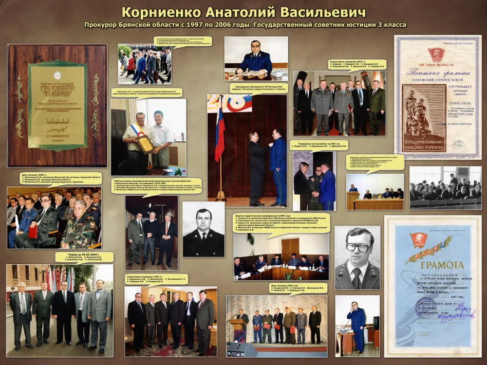 Анатолий Корниенко возглавлял прокуратуру Брянской области с 1997 года по 2006 год. Государственный советник юстиции 3 класса посвятил служению закону 33 года жизни.