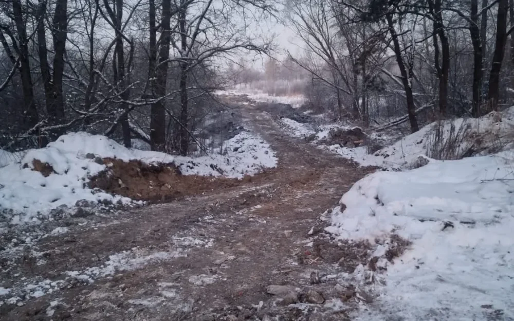 По словам жителей, дорога строится из строительного мусора, тяжелые грузовики постоянно ездят по лугу. В опасности находится родник, где местные жители берут воду.