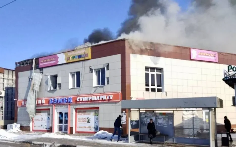В Белгородской области второй раз за день обстреляли город Шебекино, при этом загорелся торговый центр.