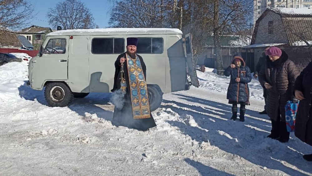 Настоятель храма иерей Олег Гусев и клирик Казанского храма в Навле иерей Николай Широков освятили автомобиль.