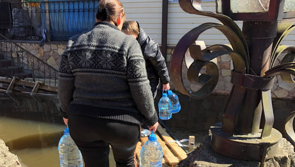 В Брянске жителям подтопленной из-за паводка Нижне-Заречной улицы передали продукты и воду