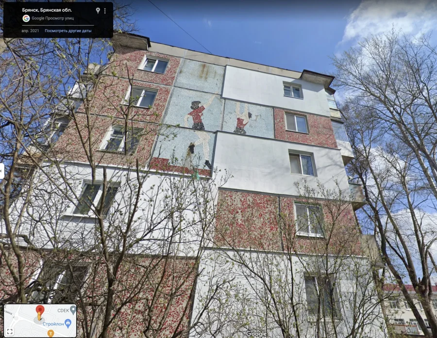 Домов с советской мозаикой в Брянске осталось не так много. Поискав в сети, обнаружилось несколько фото.