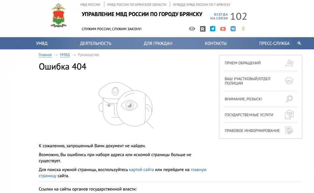 Но если мы перейдем по ссылке, то обнаружим ошибку 404. Не было никакого Соколова! Может, его гипнозом Воланда в Ялту забросили? Может. Но в брянской полиции такого человека никогда не было, утверждает ведомственный сайт.