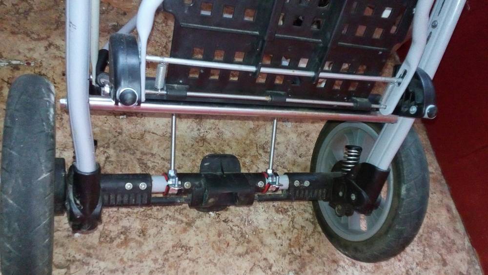 − Это трудно − продолжить законченную инженерную мысль и готовое промышленное изделие приспособить в своих интересах. Был даже момент, когда становилось очевидным, что из затеи ничего не выйдет. Рисковать позволил бесплатный исходный материал. Не берусь утверждать, что по своим параметрам и характеристикам переделки отлично подойдут для хозяйственных нужд. Однако, мне удалось как-то свести расчёты в оформленную вещь, разжиться метизами (это дорого) и, главное, купить подшипники! На всё про всё ушло недели полторы времени и рублей 500 денег − существенная для повседневного бюджета сумма. Конструкторская интрига заключалась в том, что вместе соединения рамы с задней осью был скос, задние колёса максимально вынесены назад. Я решил обыграть эту особенность, чтобы получить выигрыш в силе. По-моему, мне не удалось поставить себе на службу характерную особенность заводского изделия, благо вообще получилось закрепить сидение на новом месте и соорудить что-то громоздкое, но похожее на тележку.