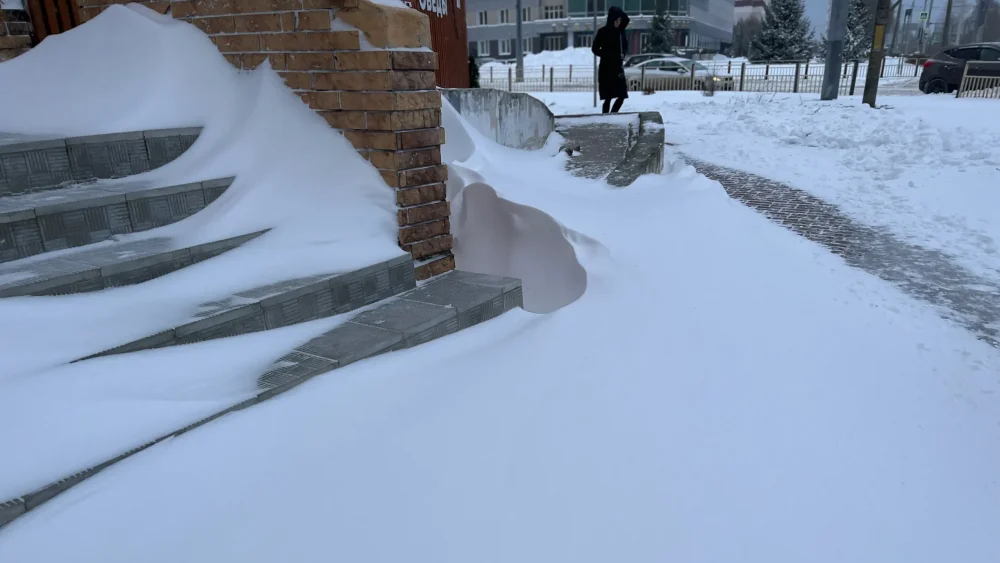 Там, где снег почистили, или его сдувал сильный ветер, пешеходов поджидала другая опасность – коварный лед.