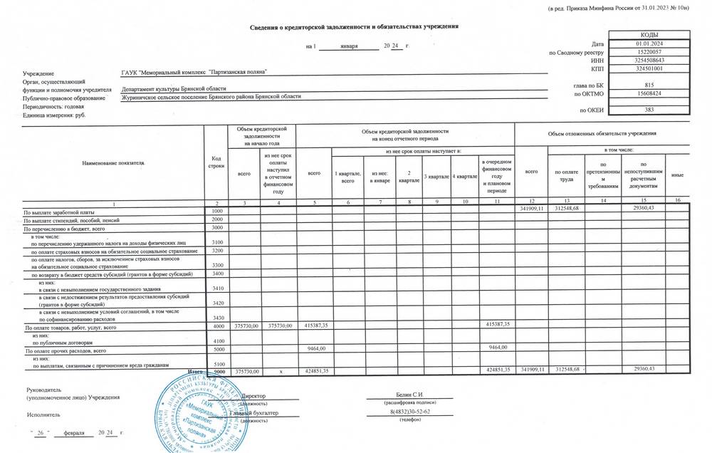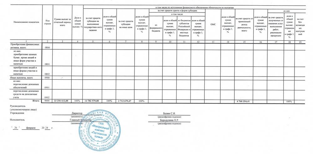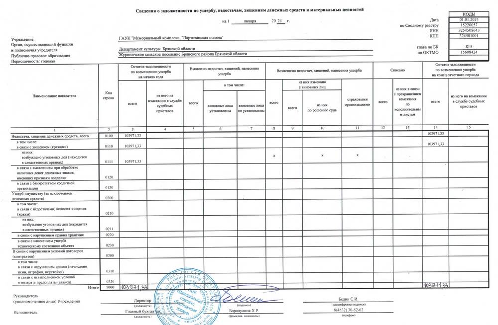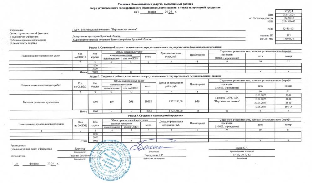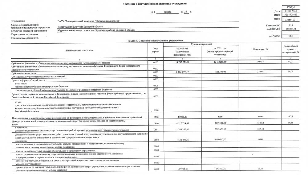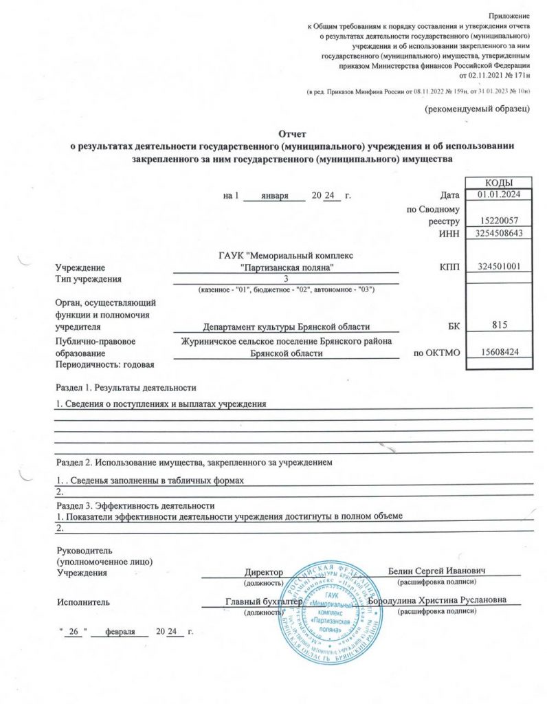 Отчет ГАУК «Мемориальный комплекс «Партизанская поляна» о результатах деятельности за 2023 год