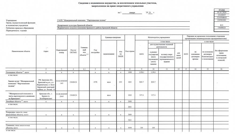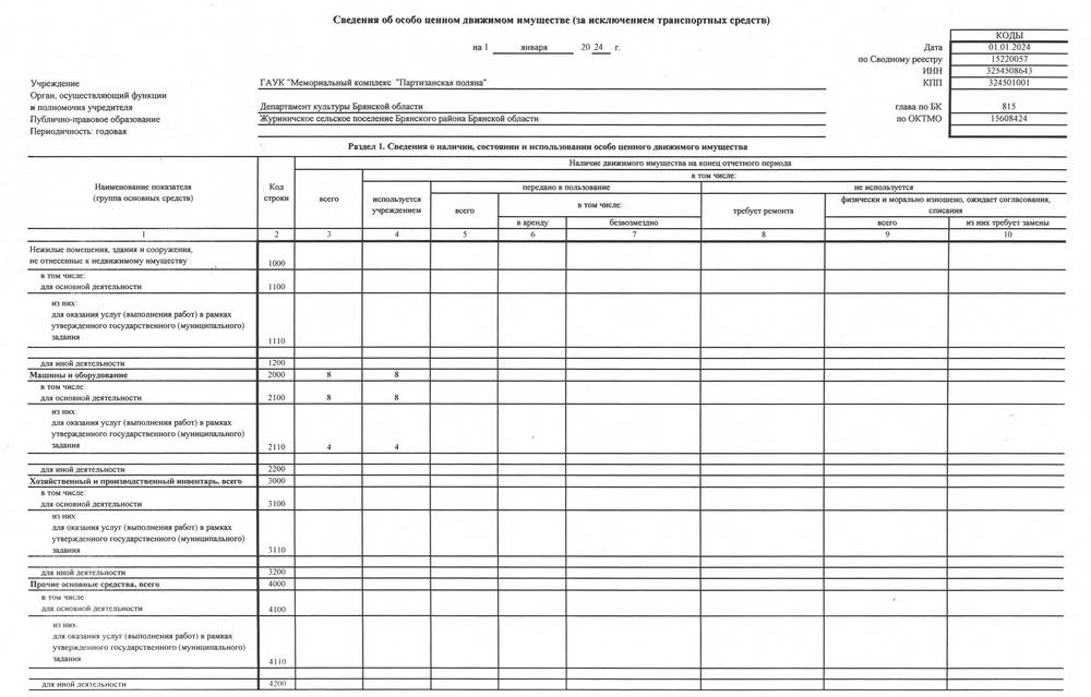 Отчет ГАУК «Мемориальный комплекс «Партизанская поляна» о результатах деятельности государственного (муниципального) учреждения и об использовании закрепленного за ним государственного (муниципального) имущества.
