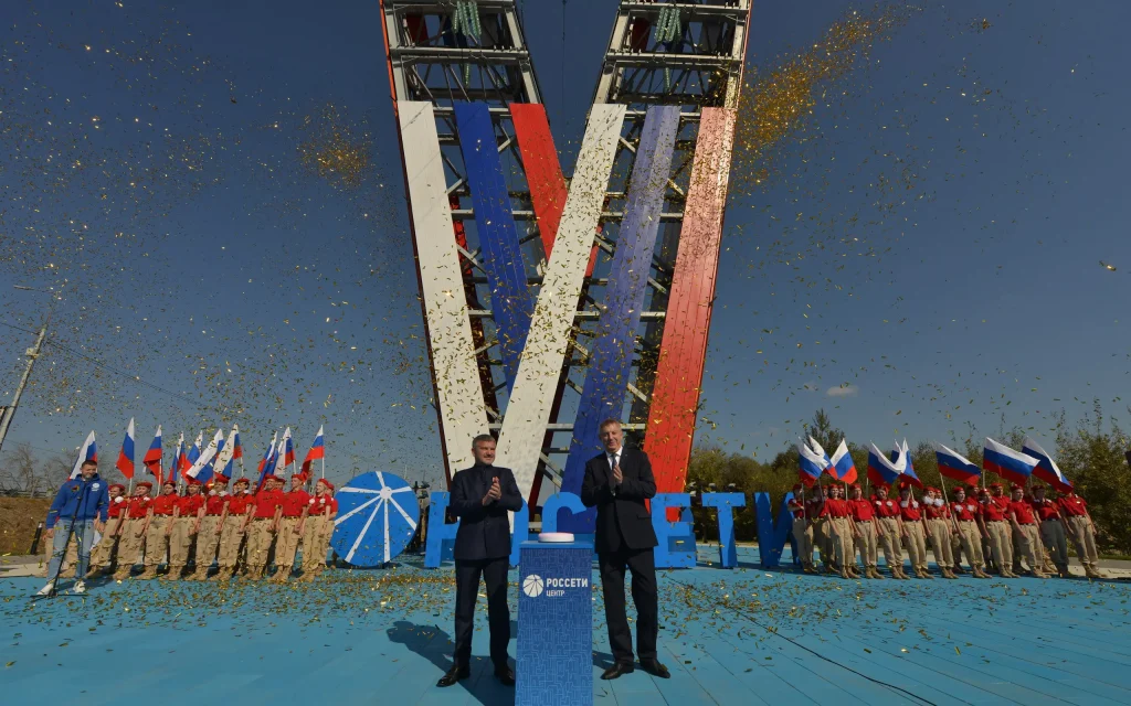 Как сообщает телеграм канал «ИнформБюро», https://t.me/informationbureau/9566, В День города и годовщины освобождения от немецко-фашистских захватчиков в Брянске была открыта опора ЛЭП в форме латинской буквы «V», обозначающей «викторию» или Победу.