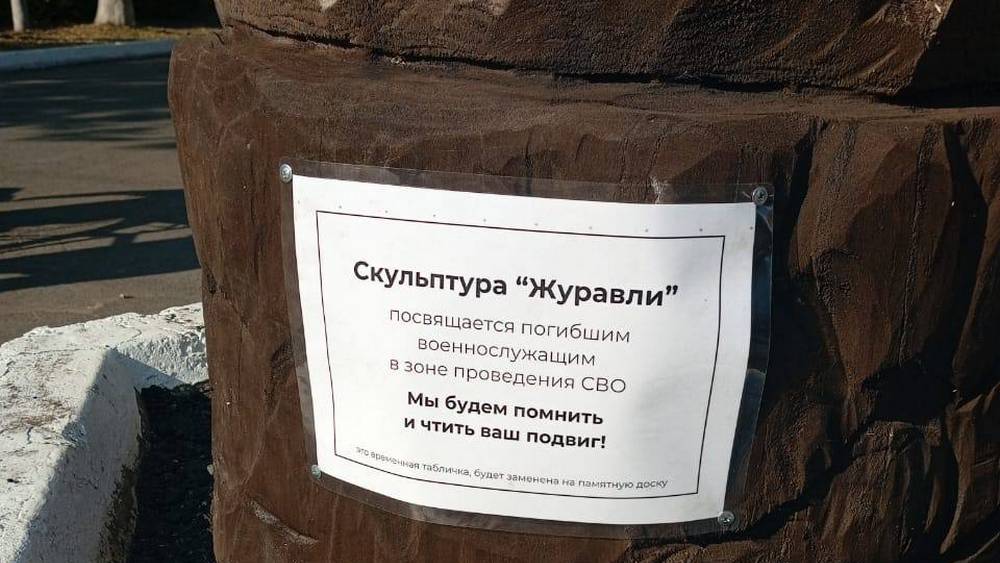 В брянском поселке Белые Берега установили скульптуру «Журавли», посвященную военнослужащим, которые погибли в зоне проведения специальной военной операции.