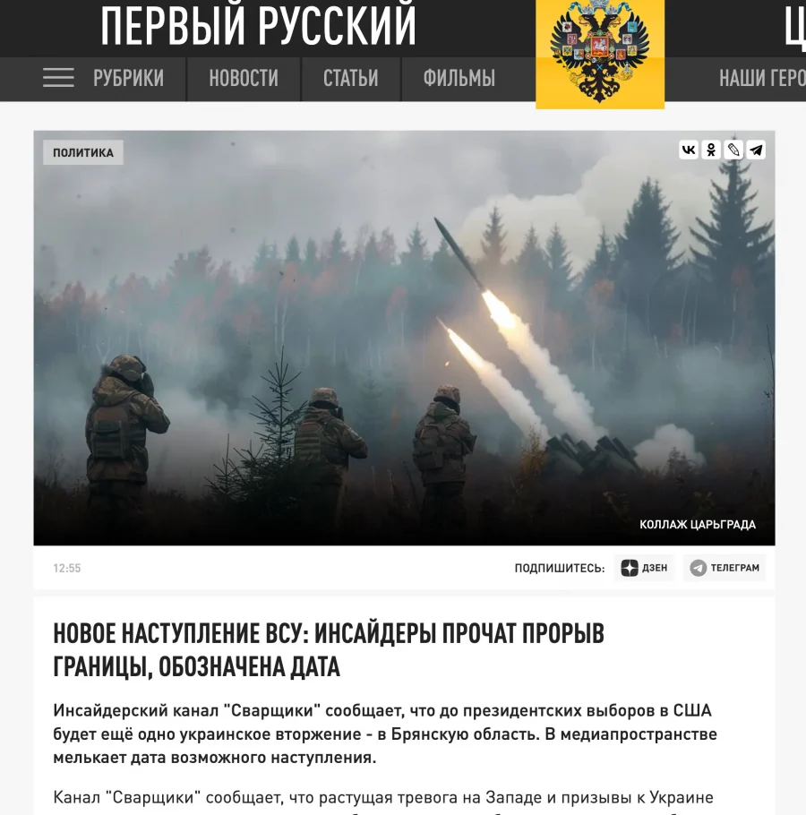 Утверждается, что «до выборов в США ВСУ собираются совершить нападение на Брянскую область». Издание пишет, что «эксперты сообщают, что «точно известно», что они попытаются прорваться к нам где-то в этом регионе, возможно, даже до ноября. Это логично, поскольку после будет выборы американского лидера».
