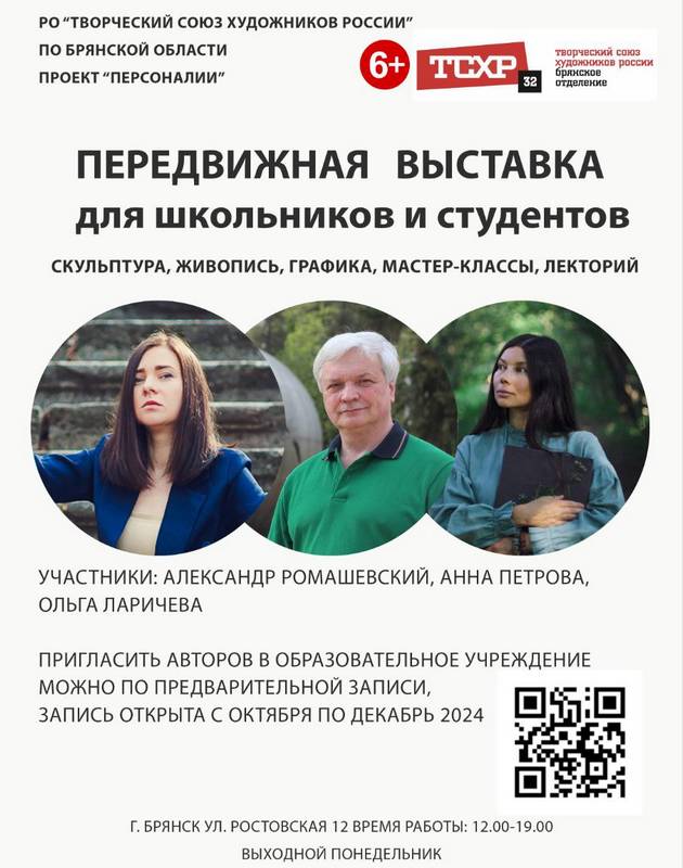 Брянское отделение общероссийской общественной организации «Творческий Союз художников России» продолжает работу над проектом «Персоналии», который является частью экспериментальных творческих мастерских Союза художников России (ТСХР) и представляет собой интегральную художественную инициативу.