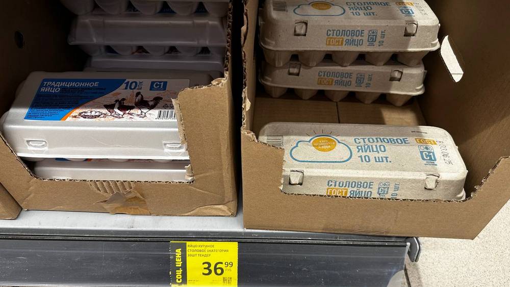 Несколько дней назад они стоили на рубль дороже, но и тогда эта цена была удивительно низкой на фоне других. Десяток яиц некоторых фабрик продается по 130 − 150 рублей и более.