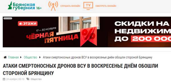 Как пишет «Брянская губерния», такие публикации распространили «некоторые региональные СМИ». Далее приводятся выражения этих СМИ: о «неспокойной» обстановке в небе» и о запуске «дронов-убийц» по областному центру.