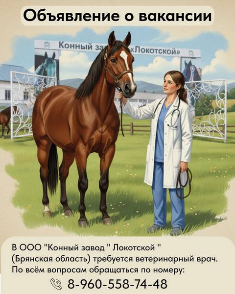 Локотскому конезаводу потребовался ветеринарный врач − самоотверженный человек, который готов служить орловским рысакам.